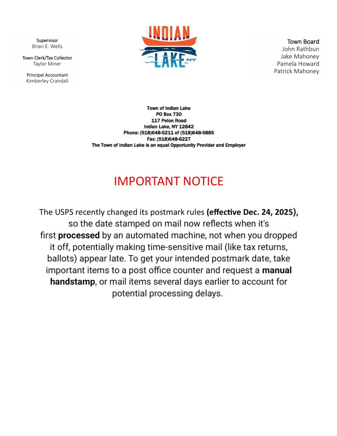 2026 Town Board meeting Schedule