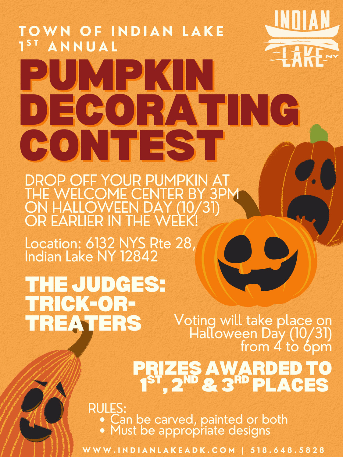 This year we are introducing the Town of Indian Lake's 1st Annual Pumpkin Decorating Contest!